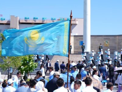 ТҮРКІСТАНДА МЕМЛЕКЕТТІК РӘМІЗДЕР КҮНІ ӘНҰРАН ШЫРҚАЛЫП, ТУ КӨТЕРІЛДІ